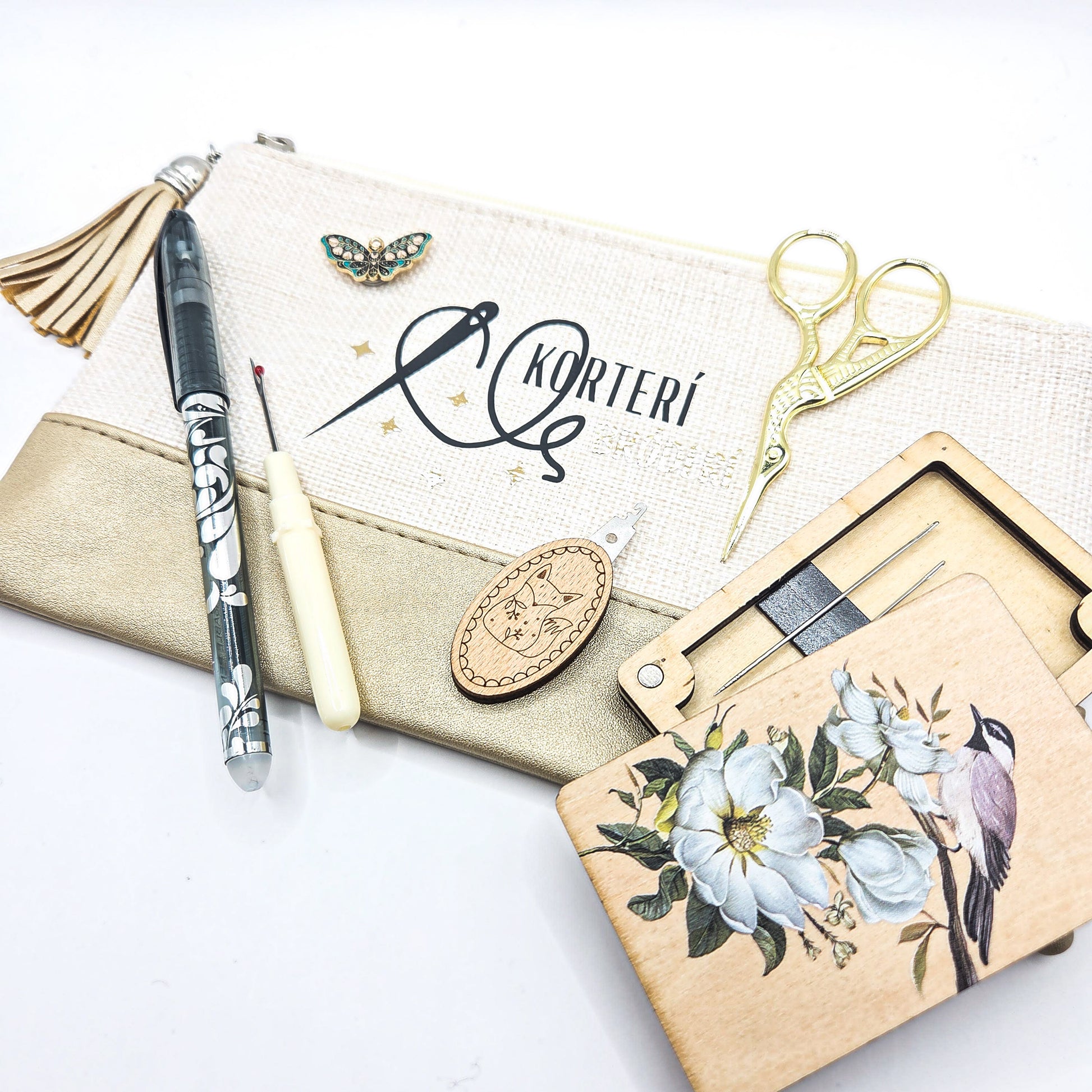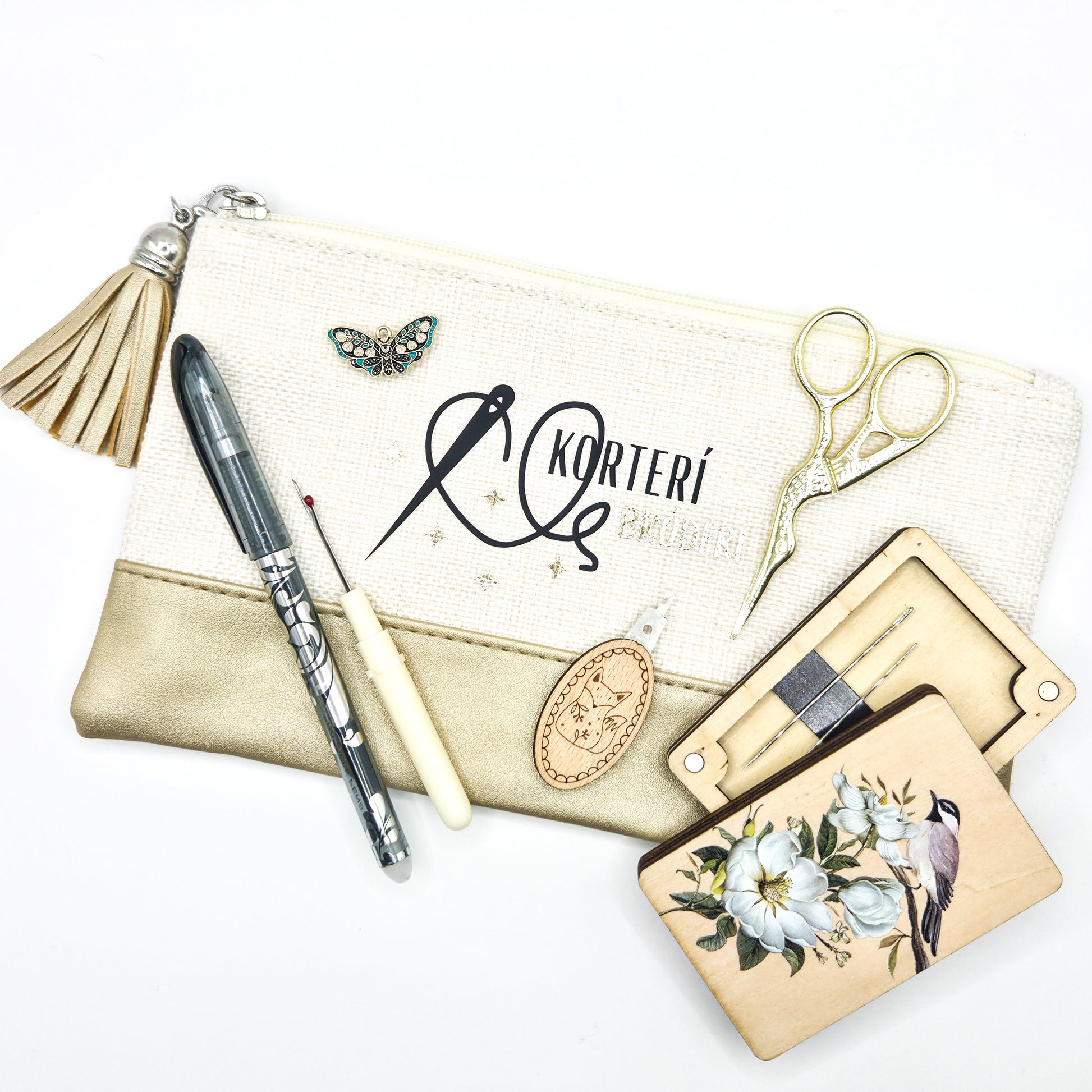 Bróderítaska með útsaumshlutum