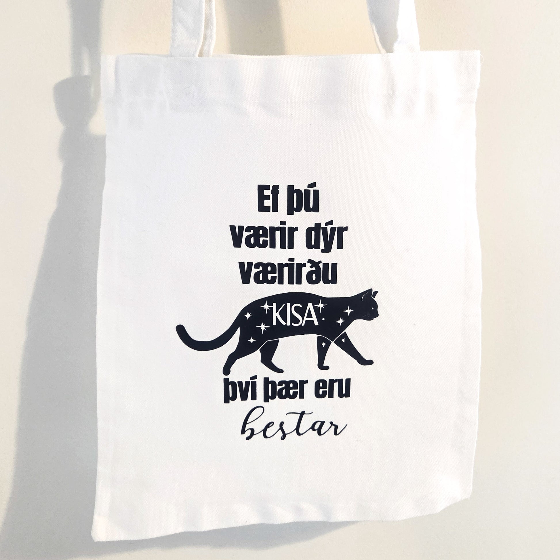 Strigataska með skemmtilegum texta; fyrir kisuvininn