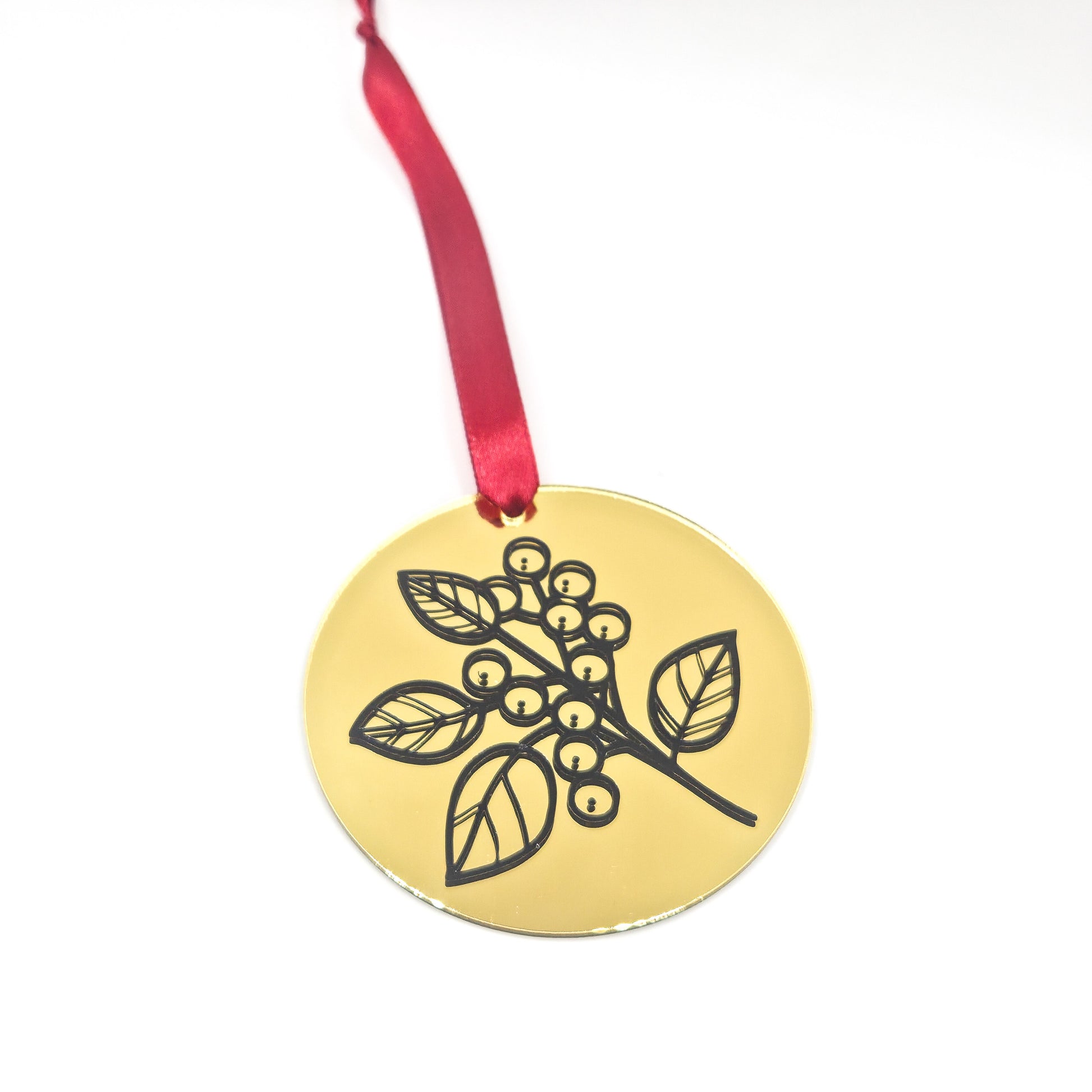 Fallegt jólaskraut, vinylmynd á gylltum speglaplatta. Kemur í fallegum umbúðum.