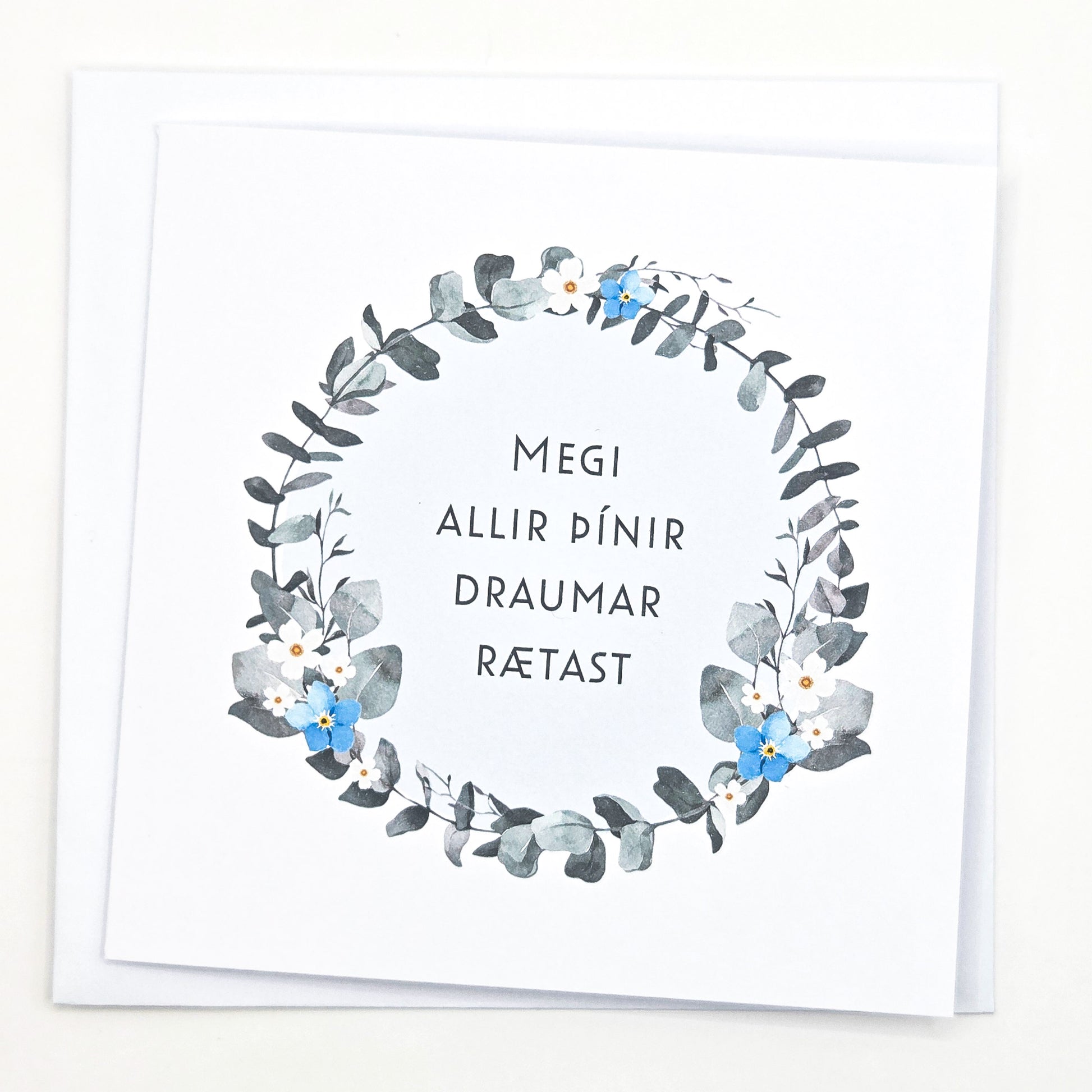 Fallegt kort úr vönduðum pappír, kemur með umslagi
