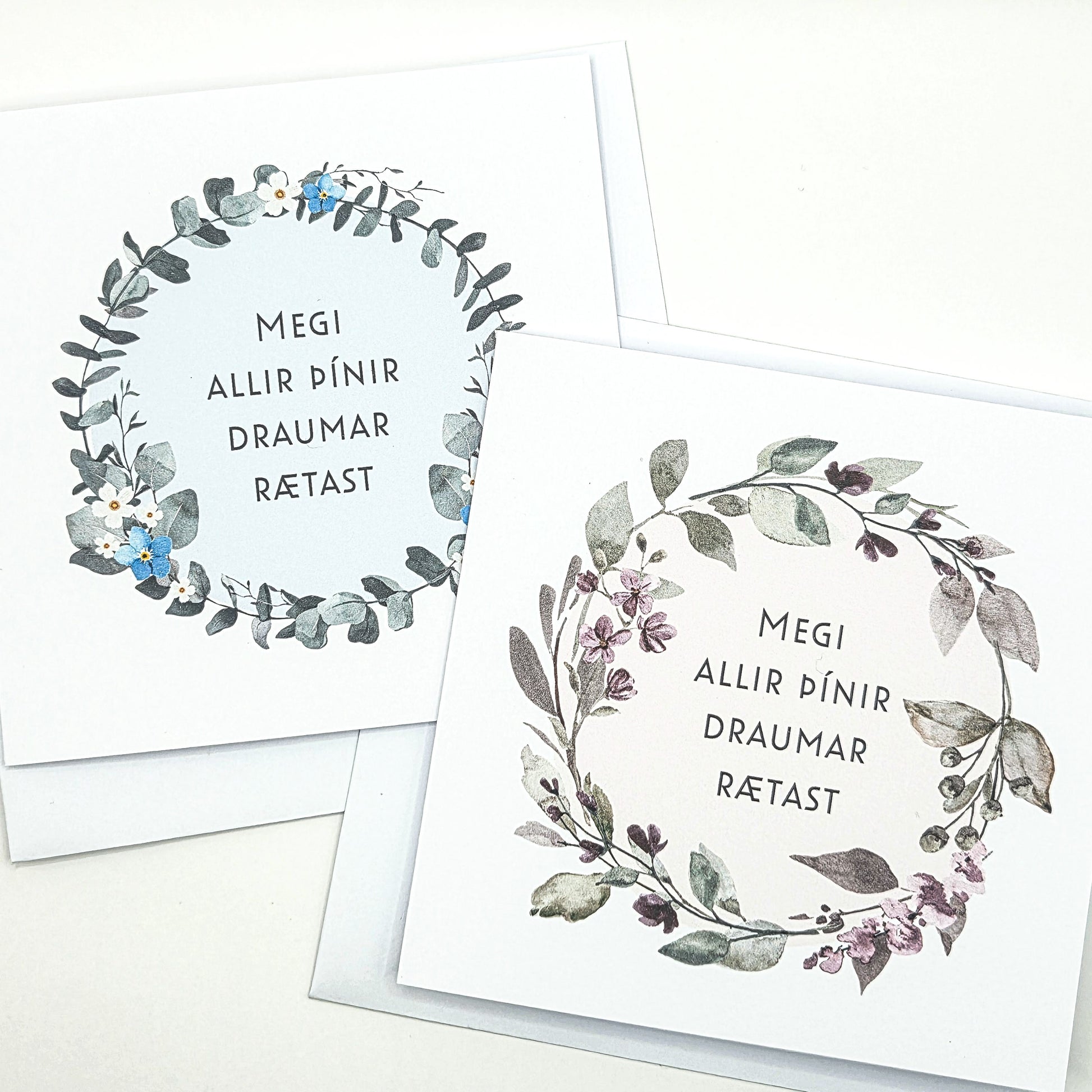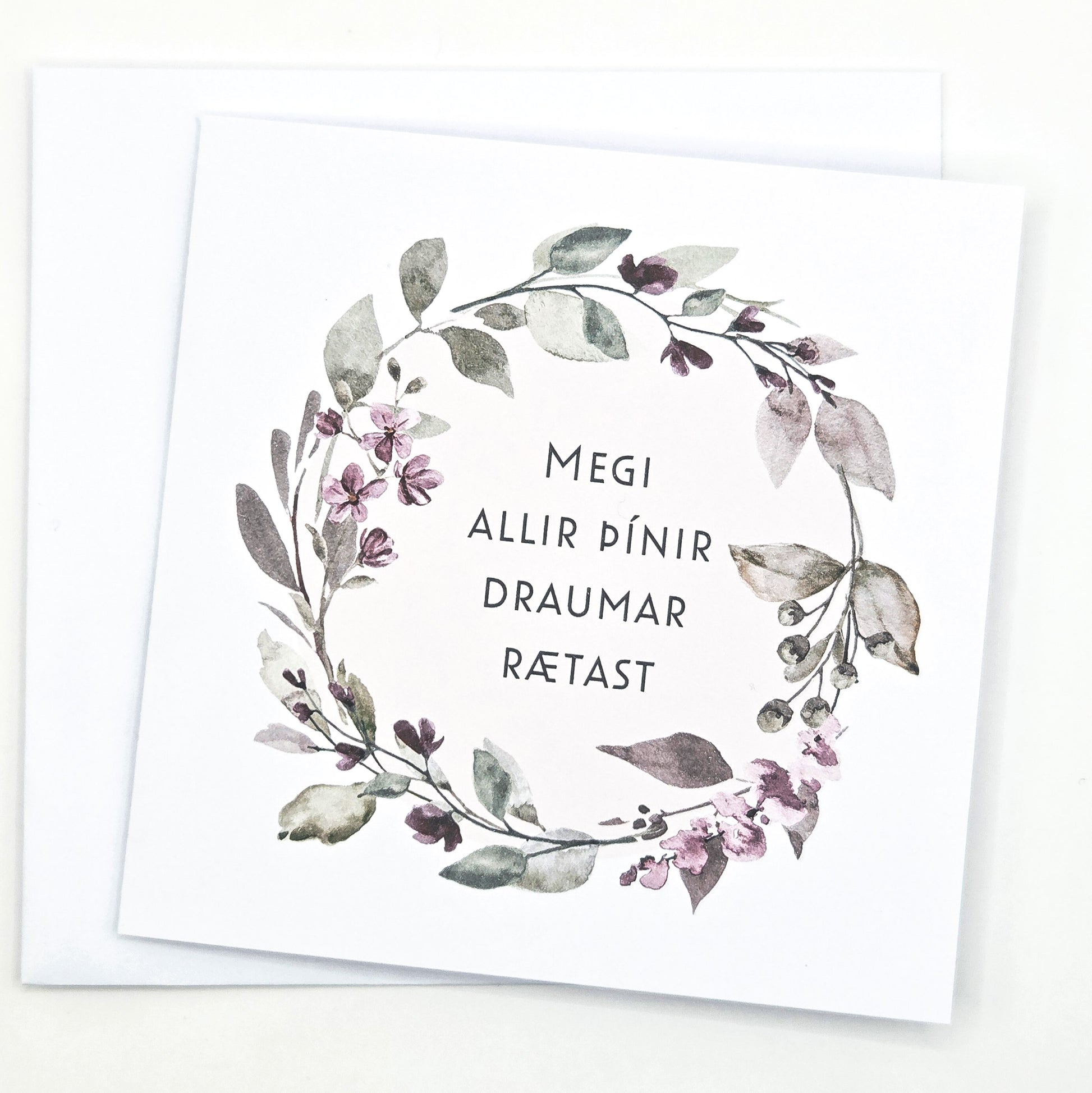 Fallegt kort úr vönduðum pappír, kemur með umslagi