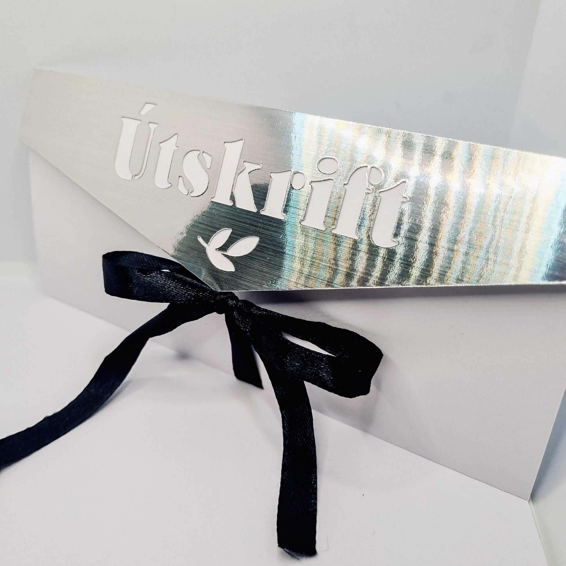 Finnirðu ekki orðið sem þú vilt, skrifarðu það í textaboxið og við græjum það. Eins ef þú vilt annan lit á bakgrunn eða slaufu þá gerum við okkar besta til að verða við því.