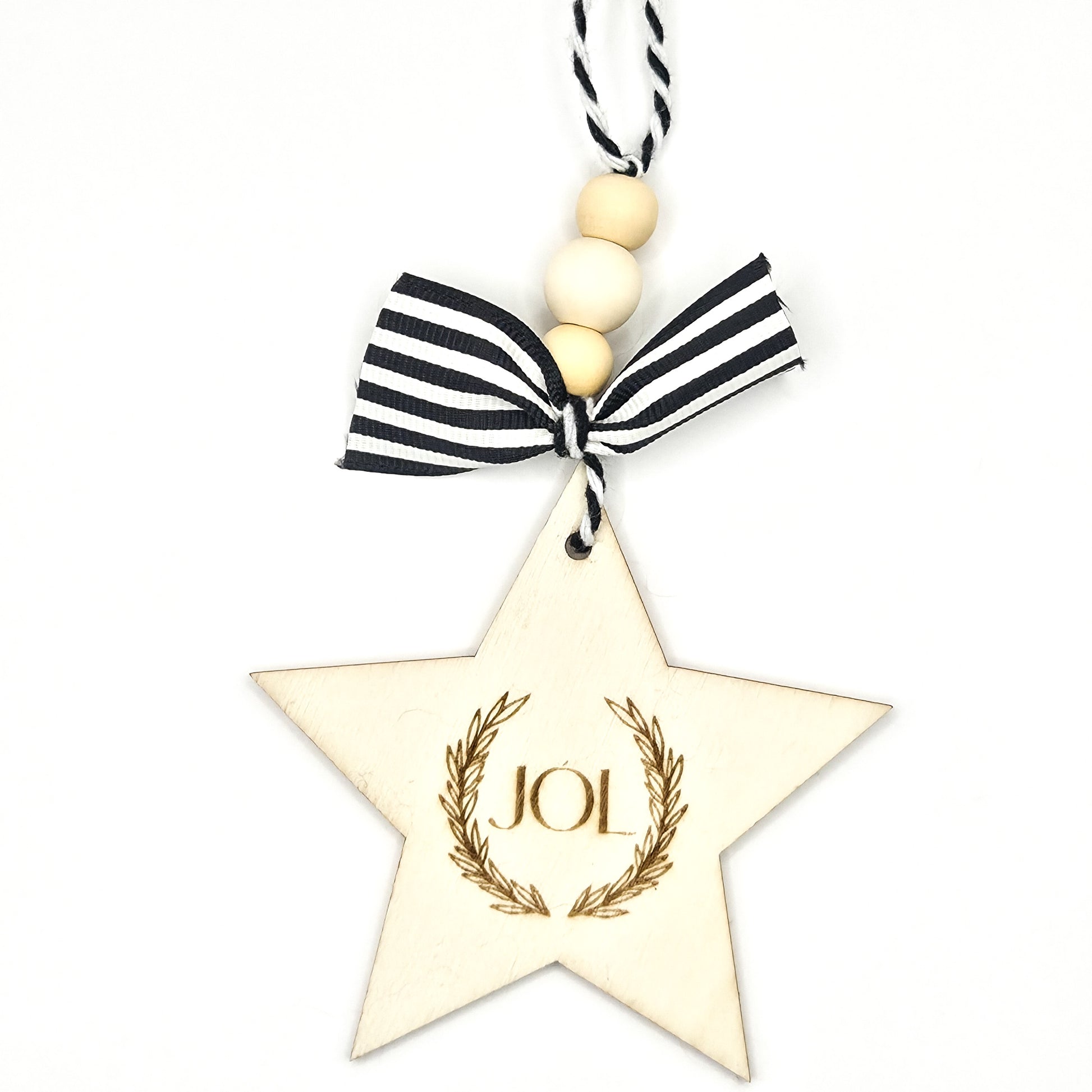 Fallegt jólaskraut með lasermerktum viðarplatta og -perlum